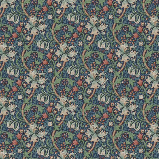 William Morris Golden Lily in Jewel Waste Paper Bin. The Bin has WHITE INNER. Each Bin is hand made and has a rolled edge for a clean finish.These are not water proof, so will require a waste bin liner bag (15L is the most appropriate size)The bottom can be removed....